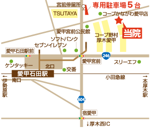 小田急線「愛甲石田駅」北口より徒歩5分 専用駐車場6台あり |